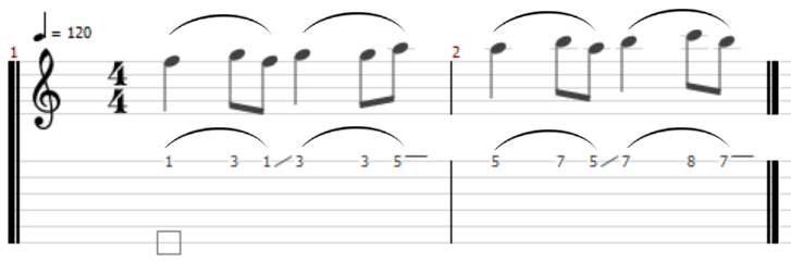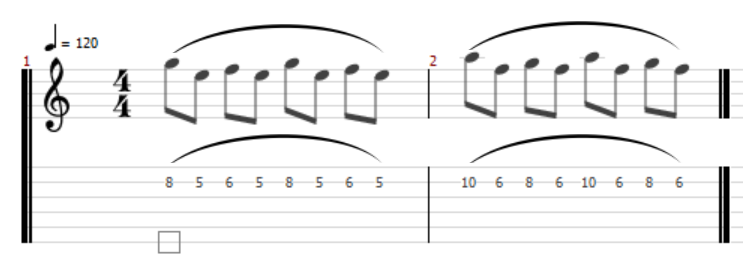 ハンマリングとプリングを駆使したフレーズの練習は、フォームを意識しながらゆっくりしたテンポで弾くことが大切です。