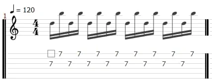 ハイブリッドピッキングのフィンガーピッキング部分では、主に中指と薬指を使用しますが、小指を活用する方法もあります。小指を使いこなすことで、より複雑なフレーズや広い音域をカバーすることが可能になります。