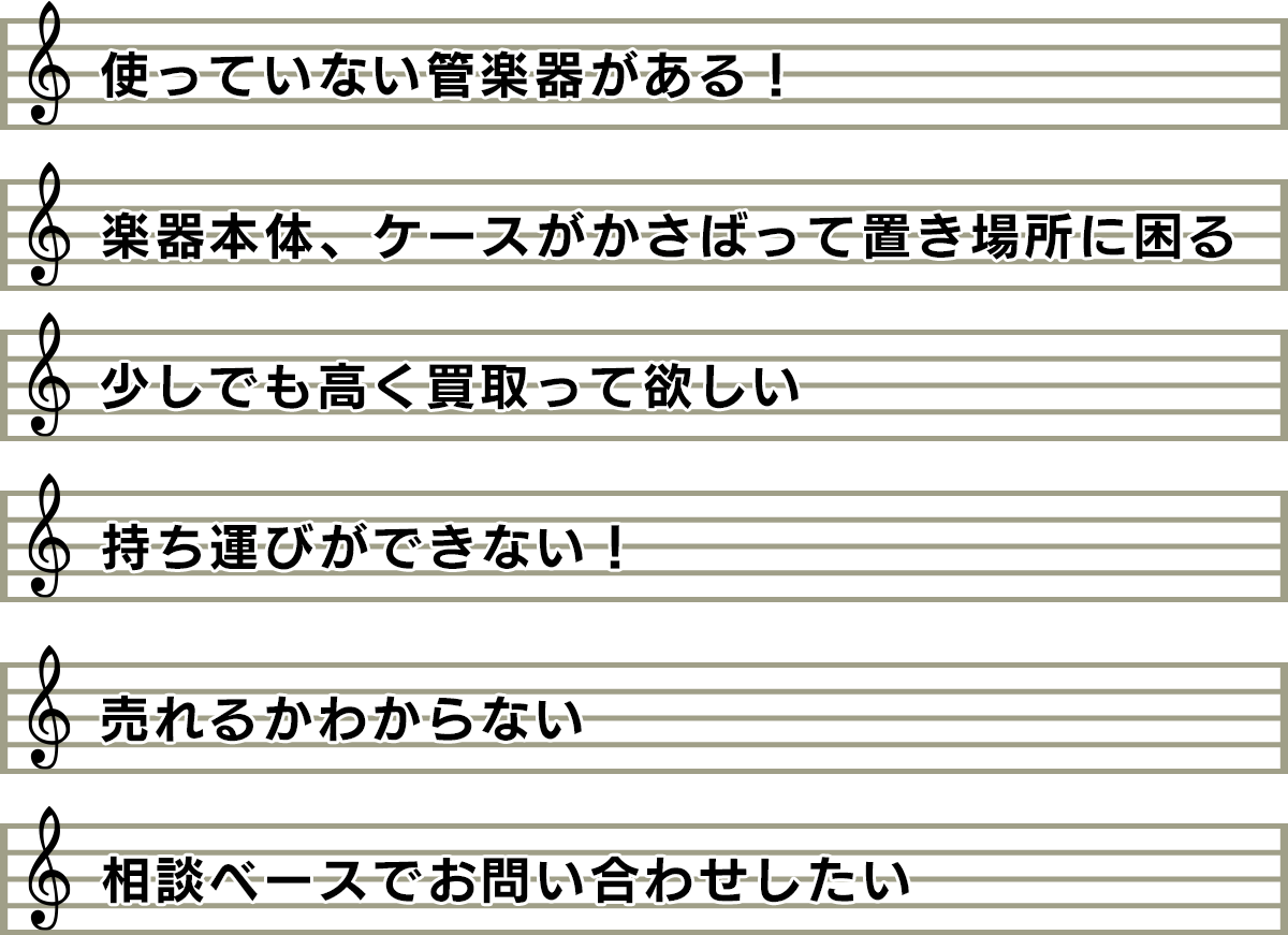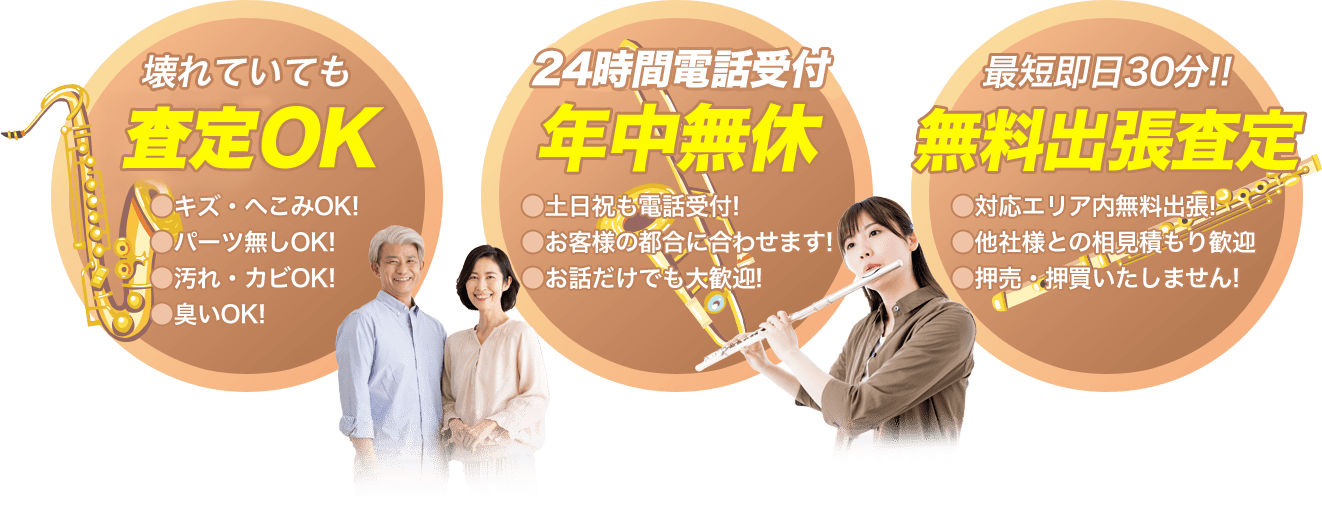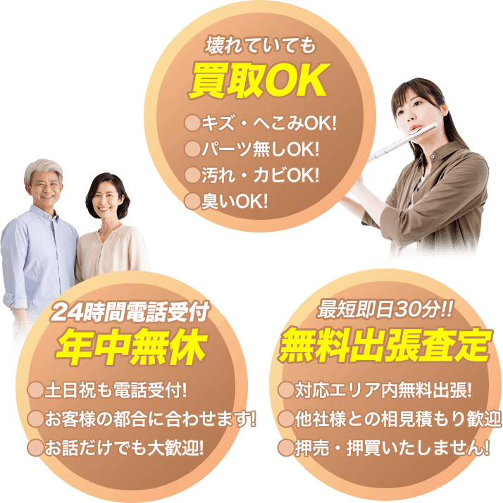 私達がすべて 解決いたします!管楽器出張買取専門楽器の買取屋さんのサービス