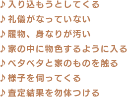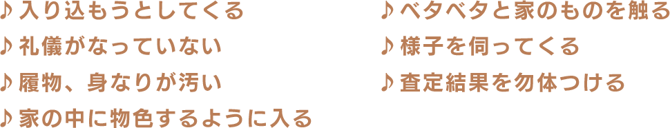 ご訪問させていただいたお客様から査定をお願いした時にこのようなことが嫌だというお話をお聞きしました。