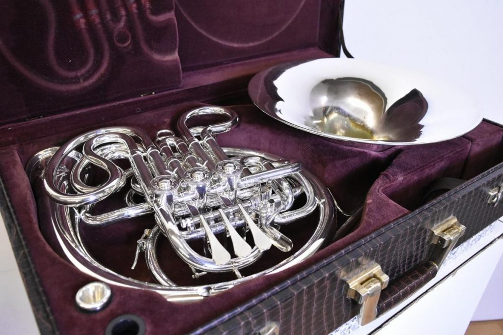 東京都世田谷区のお客様より、LINE査定にてご依頼いただき、早速お客様のスケジュールに合わせてご自宅まで伺い、ALEXANDER 103MBV アレキサンダー フルダブルホルンのお買取をさせていただきました。ベルには塗装剥がれ、薄い凹みが数箇所、管体には凹みが数箇所見受けられるなど、キズ等の使用感ある外観でしたが、ロータリー・抜差管に固着はございませんでしたので、本体、マウスピース、ケース、証明書のお引取りをさせていただきました。査定からすぐに引き取りに来てくれて、LINEでの査定額にも大変ご満足いただけたとのことでした!この度は楽器の買取屋さんにご依頼いただき、ありがとうございました!