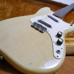 本機はネックおよびピックアップに、製造時期を記していると思われる書き込みがございましたので、ヴィンテージ品であると判断いたしました。60年台前半製であると思われ、当時、Duo-SonicはUSAでのみ製造されていたようですので、USA製であると判断いたしました。ネックとピックアップの製造年式に差異があると思われる他、ネックとボディのジョイントに、若干の隙間が見受けられますので、数本のギターを組み合わせて作られた個体である可能性もございます。