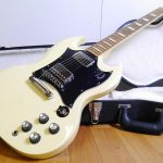 お電話でご依頼いただき、お客様のご希望のスケジュールに合わせて出張査定の方へ向かわせて頂きました。少し前までお使いになられていて、最近楽器を弾かなくてもう出番がなくなってしまったので…との事でした。拝見させて頂いたところ、シリアルナンバーより2011年製のものと判断致しました。数多くの塗装割れ・クラックが見受けられる状態でしたが、音出しの確認もさせて頂いたところ各ノブ、ガリ・ノイズなどなく良好でしたので高額買い取りさせて頂きました。Gibson/ギブソン エレキギター SG 2011年製をご売却検討中のお客様がおりましたら、楽器の買取屋さんにご相談下さい。