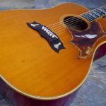 大きなボディにふくよか鳴りで人気のDoveのCustom。1962年より製作が開始されたダヴ。ハミングバードに次いでのBIRDモチーフPGモデルとして高い人気を誇っています!!本機は1974-5年製のお品。トップスプルース、サイドバックメイプル、メイプルネック、エボニー/指板ブリッジというウッドマテリアル。カラーはナチュラルトップ、サイドバックレッドカラー!!ネックエンドからサウンドホールにわたってボディ割れも見受けられ、その他、ピックガードにかなりの劣化が見られました。柄もあまり残っていない状態でしたが、出音に関してはさすがと言ったところで大きいボディに見合った豊かな鳴りと力強さを奏でてくれます!!