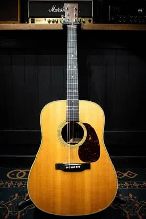 Martin D-28は、1930年代から続く伝統を受け継ぐモデルで、ローズウッドボディとスプルーストップの組み合わせによる重厚かつ豊かな響きが特徴です。D-28 Standardはその中でも現代のプレイヤーに向けたスペックを備えており、プロ・アマ問わず多くのギタリストに愛され続けている名器です。国内外で非常に人気が高く、中古市場でも常に注目されています。